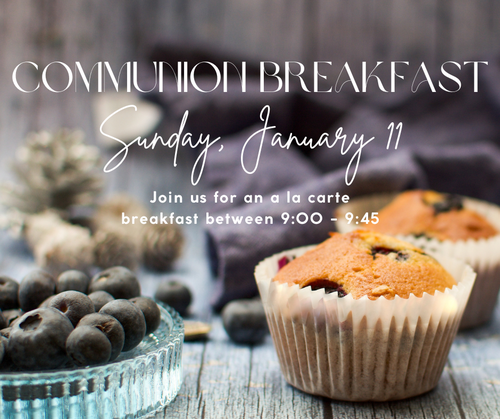 The next Communion Breakfast will be Sunday, January 11th! Stop in the gym anytime from 9:00-9:45 AM for a delightful continental breakfast. This is a wonderful opportunity to gather together before we observe communion. We look forward to seeing you there!