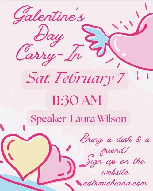 All women are invited to join us for our annual Galentine's Day Carry-In. We will have a fun morning of fellowship and hearing from guest speaker, Laura Wilson. For the carry-in meal, we ask that you bring something according to the first letter of your last name.